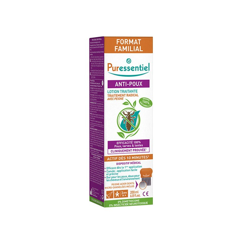 Les laboratoires Puressentiel proposent Lotion traitante Anti-poux traitement radical dès la première application en 10 minutes.