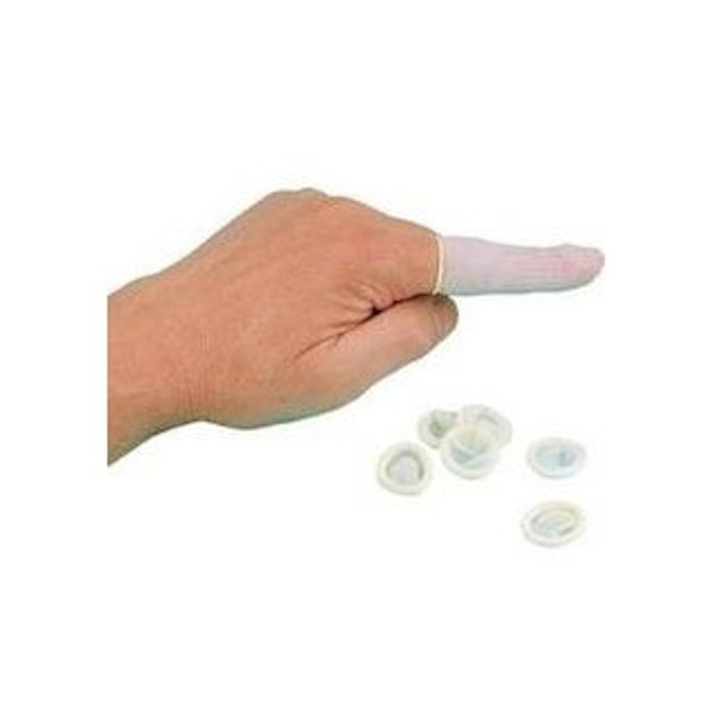 Aspect : doigtier d'une seule pièce cylindrique, présenté roule sur toute sa longueur (à dérouler sur le doigt lors de sa mise en place).