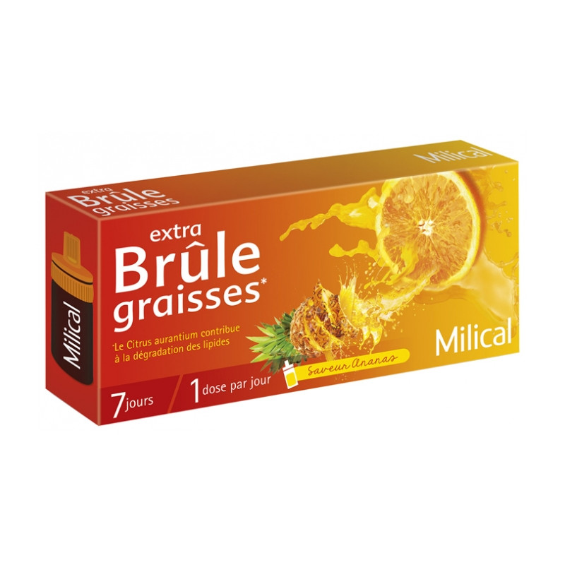 Milical Extra Ananas Brûle-Graisses 7 Doses est un complément alimentaire buvable à base de plantes, spécialement conçu pour brûler les graisses.