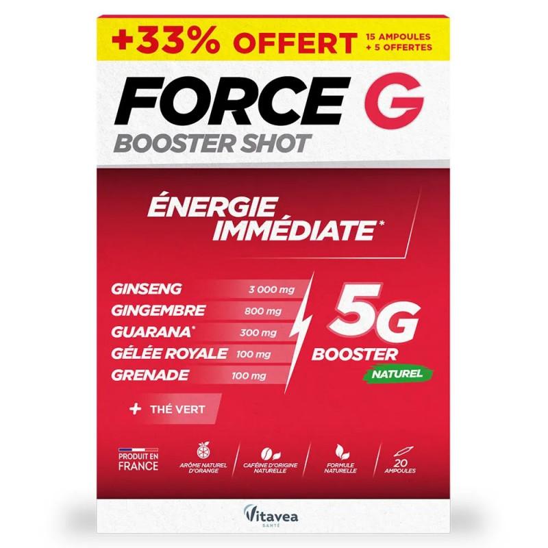 Force G Booster Shot est votre allié pour retrouver une énergie optimale et améliorer vos performances. Grâce à ses ingrédients reconnus et sa formulation naturelle, il vous offre un coup de boost instantané pour maintenir votre meilleure forme jour après jour.