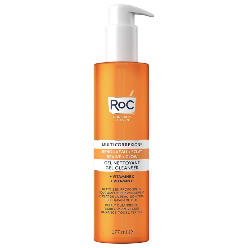 RoC Multi Correxion Renouveau + Éclat Gel Nettoyant 177 ml est un gel nettoyant vitalisant qui élimine les impuretés qui ternissent la peau et réapprovisionne la peau grâce à un mélange de vitamine C et de puissants extraits de fruits. Il nettoie en profondeur pour améliorer visiblement l'éclat de la peau, son teint et le grain de peau.