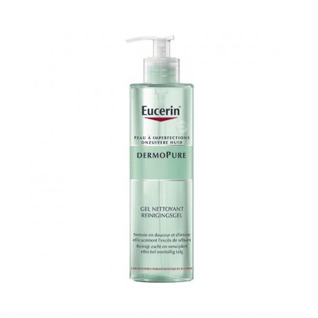 EUCERIN DermoPure Gel Nettoyant élimine efficacement et en douceur l'excès de sébum, tout en enlevant les impuretés et le maquillage, grâce à sa formule sans savon avec 6% de Tensioactifs Amphotères. La peau du visage est propre, fraîche et souple. Non-comédogène.