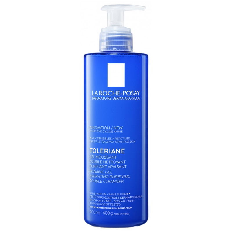 La Roche-Posay Tolériane Gel Moussant Nettoyant 400 ml est un nettoyant purifiant et apaisant pour les peaux sensibles à réactives.