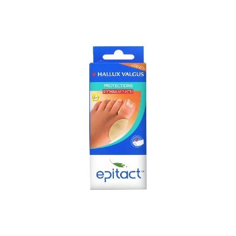 Epitact Hallux Valgus Protections 2 Unités sont des protections auto-adhésives permettant de protéger et soulager l'hallux valgus (oignon) grâce au gel d'Epithelium Activ. Le gel d'Epithelium Activ répartit les pressions et diminue les frottements à l'origine des douleurs. Très fines, ces protections s'utilisent en journée dans toutes les chaussures. Elles conviennent également au pied du diabétique. Dimensions : 4,4 x 5,6 cm.