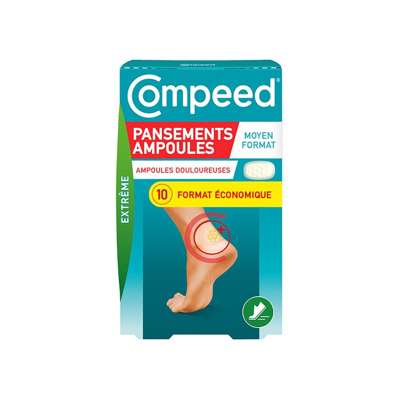 Compeed Ampoules Assortiments 10 Unités est un lot de pansements de trois formats différents qui permettent de soulager les ampoules sur les pieds.