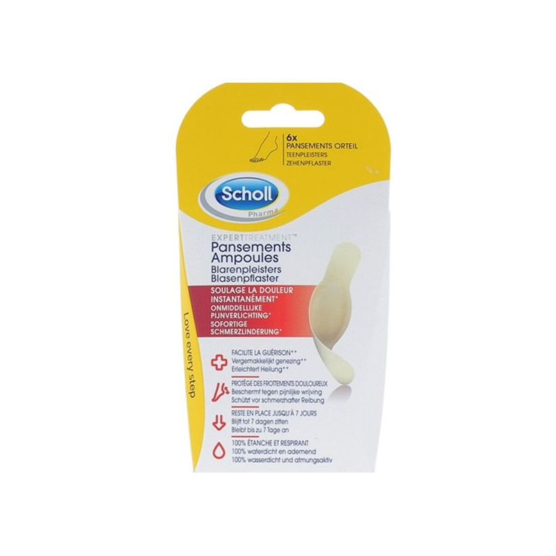 Scholl Pansements Ampoules Orteils 6 unités soulagent la douleur instantanément et facilitent la guérison des ampoules tout en protégeant des frottements douloureux.