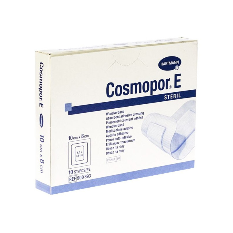 Hartmann Cosmopor E Pansement Stérile Adhésif 10cm x 8cm 10 unités sont des pansements stériles auto-adhésifs dotés d'un coussinet absorbant central.