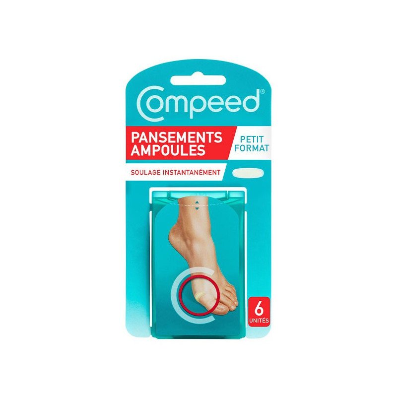 Ampoules Peau exposée aux frictions (nouvelles chaussures) Prévention pendant l'effort (marche à pied)Compeed pansement pour ampoules soulage instantanément la douleur et prévient la formation d'ampoule. Les propriétés de l'Hydro Cure System retiennent l'humidité naturelle de la peau et favorisent la formation d'un coussinet qui active le processus naturel de cicatrisation.De forme ovale et de couleur chair, il joue le rôle d'une seconde peau.