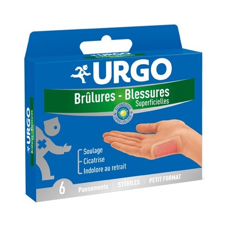 Pansement stérile urgo brûlures, blessures superficielles est destiné au traitement des brûlures du 1er degré et du 2nd degré superficiel (cloque) ainsi que des blessures superficielles (écorchures, coupures).