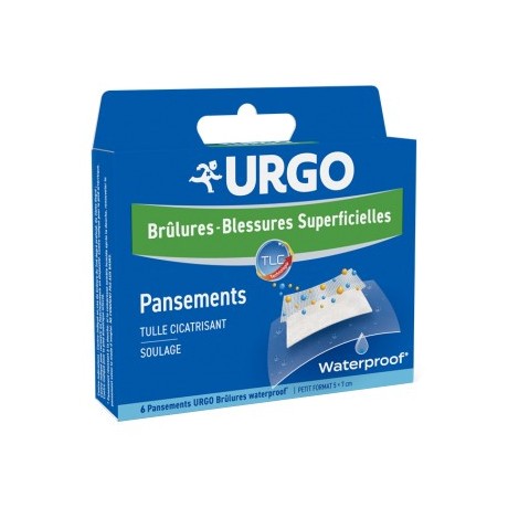 Urgo Premiers Soins Brûlures Blessures Superficielles Pansements Waterproof est un dispositif médical qui permet de traiter les brûlures ménagères de 1er degré et du 2nd degré superficiel.