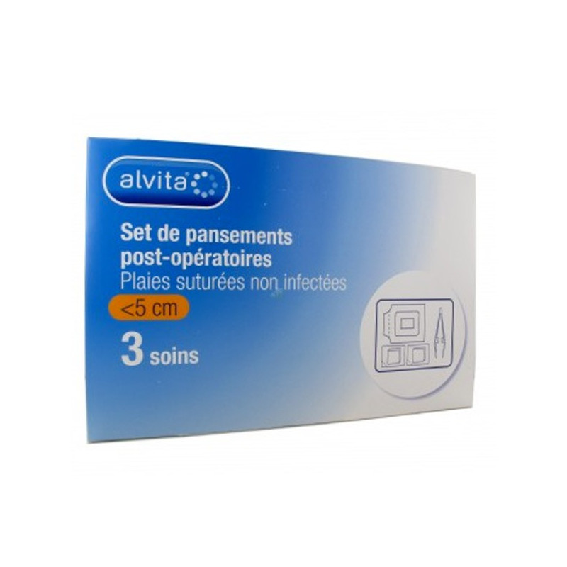 Le set de PANSEMENT post-opératoire plaies INFERIEURES à 5cm, est composé de 3 blisters stériles (pour 3 soins) contenant chacun :
