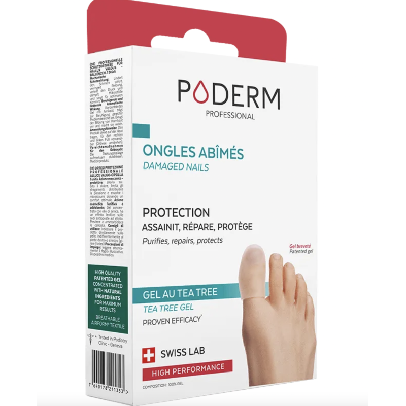La protection au Gel Tea Tree pour ongles abîmés de Poderm est un capuchon permettant de réparer les mycoses des ongles tout en le protégeant et en prévenant son décollement ainsi que sa dégradation. Ce capuchon permet une diffusion des actifs pendant 4 semaines et favorise la repousse de l'ongle.