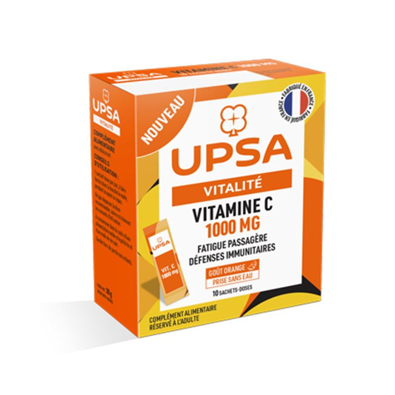 Certaines périodes sont plus difficiles que d'autres, la fatigue et le manque d'energie peuvent impacter votre quotidien et vos différentes actvités. Dans ces moments-là, le complément alimentaire UPSA vitamine C sachet-dose est votre allié grâce à la vitamine C, qui contribue à un métabolisme énergetique normal, à réduirez la fatigue et qui est également reconnue pour contribuer au fonctionnement normal du systême immunitaire.