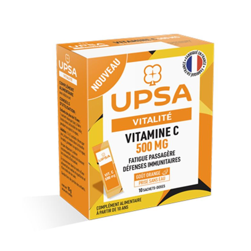Certaines périodes sont plus difficiles que d'autres, la fatigue et le manque d'energie peuvent impacter votre quotidien et vos différentes actvités. Dans ces moments-là, le complément alimentaire UPSA vitamine C sachet-dose est votre allié grâce à la vitamine C, qui contribue à un métabolisme énergetique normal, à réduirez la fatigue et qui est également reconnue pour contribuer au fonctionnement normal du systême immunitaire.