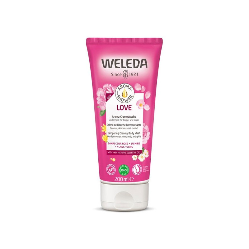 Weleda Love Crème de Douche Harmonisante 200ml nettoie en douceur, au parfum délicat, floral et romantique issu de rose de Damas, de jasmin précieux et d'ylang-ylang.