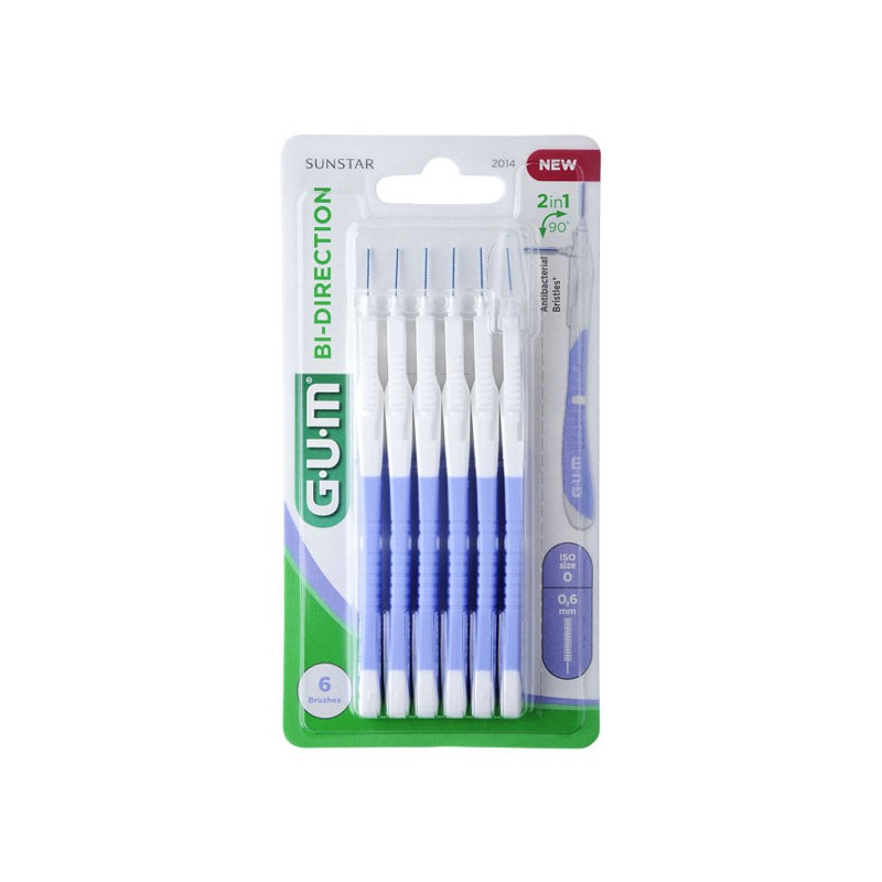 Gum Brossette Interdentaire Bi-Direction 0,6mm Bleu Lavande 6 unités est conçu pour éliminer efficacement la plaque dentaire.