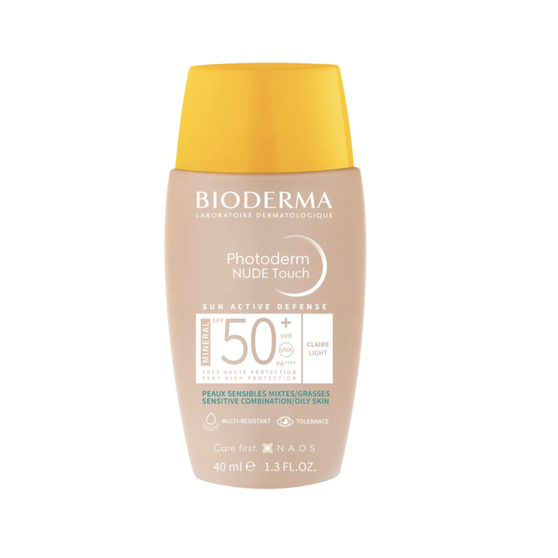 Nude Touch Photoderm Soin Solaire Minéral SPF50+ est un soin protecteur à la teinte claire pour les peaux sensibles, mixtes à grasses.