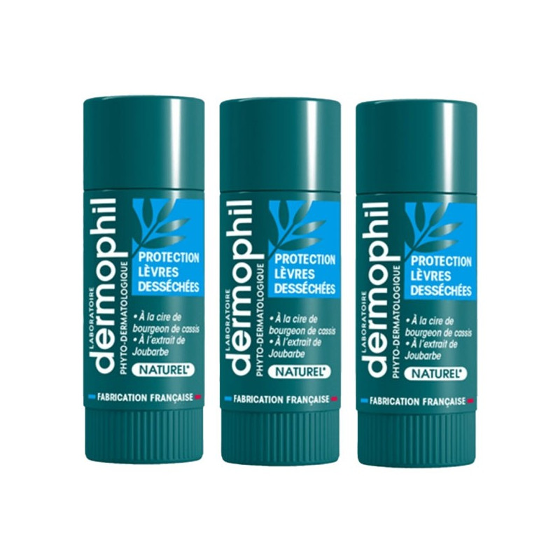 Dermophil Indien Sticks Protection Lèvres Desséchées Bio Lot de 3 x 4g prend soin de vos lèvres au quotidien.