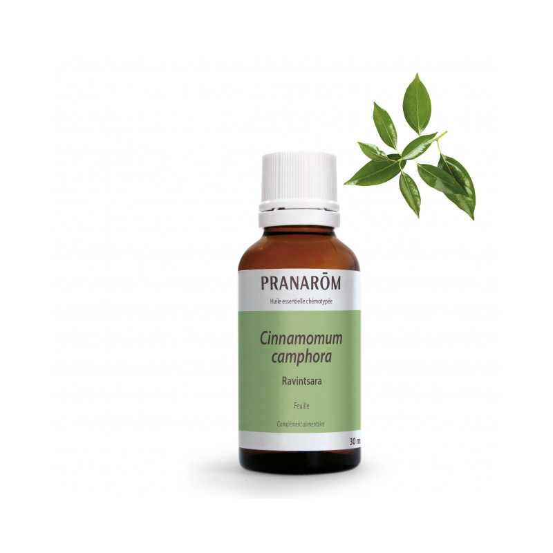 Le ravintsara est un arbre originaire de Madagascar, aussi appelé faux camphrier, qui peut atteindre une quinzaine de mètres de haut, et dont l’appellation signifie "la bonne feuille" en malgache. L’huile essentielle de ravintsara bio Pranarom est élaborée en distillant les feuilles de cet arbre à la vapeur d’eau, principalement pendant la saison sèche. Elle est considérée comme l’une des meilleures huiles essentielles connues, notamment grâce à son action antivirale qui serait exceptionnelle. Cette propriété est d’ailleurs celle qui prédomine pour un usage par voie orale, car elle serait à la fois anti-infectieuse et antibiotique, et permettrait de prévenir l’apparition et le développement d’un virus, mais empêcherait surtout les risques de surinfection.