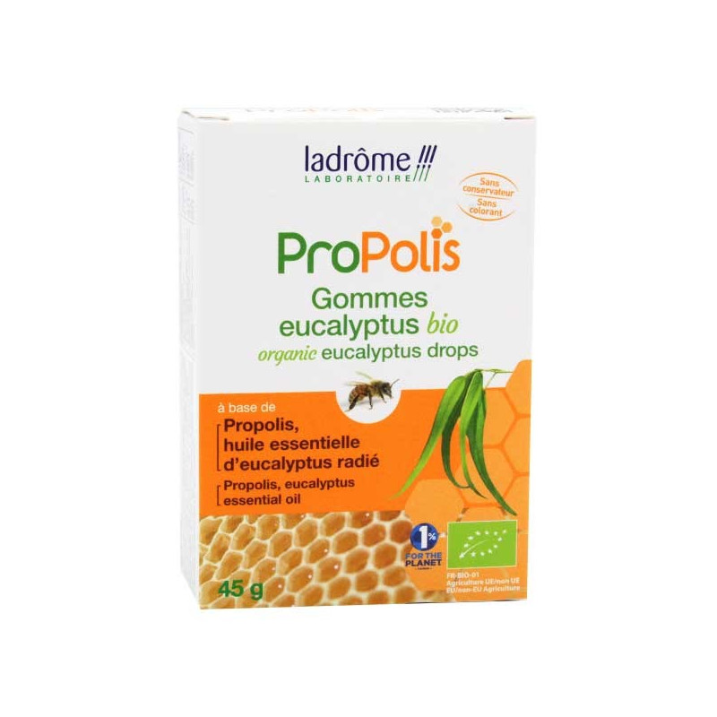 Les gommes à la propolis et à l'eucalyptus ladrôme aident à adoucir la gorge, rafraîchissent l'haleine et favorisent une bonne respiration