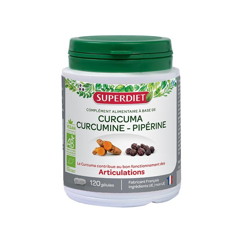 Super Diet associe dans son complément Articulations Bio du curcuma, son actif la curcumine ainsi que de la pipérine, substance active du poivre noir.