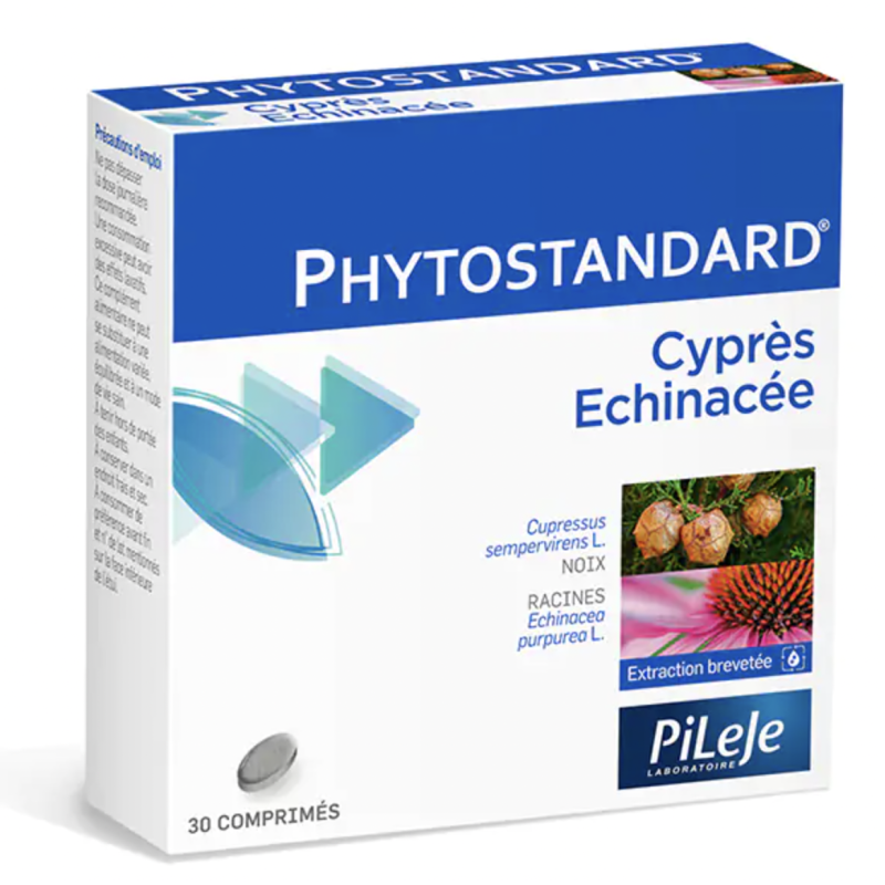 Phytostandard® de Cyprès et d'Echinacée est un complément alimentaire à base d'extraits de cyprès (Cupressus sempervirens L.) et d'échinacée (Echinacea purpurea L.).