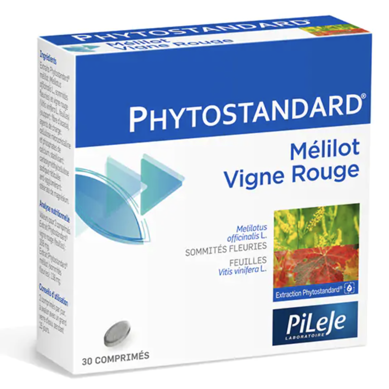 Phytostandard® de Mélilot et de Vigne rouge est un complément alimentaire à base d'extraits de mélilot (Melilotus officinalis L.) et de vigne rouge (Vitis vinifera L.).