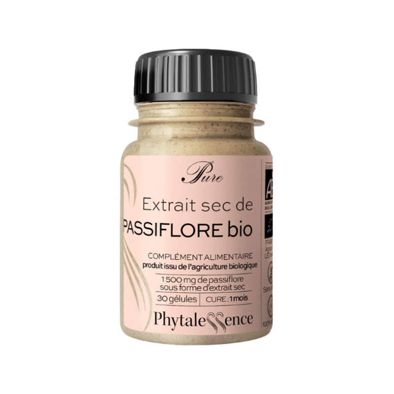 Phytalessence Pure Passiflore Bio 30 Gélules est un complément alimentaire à base d'extrait sec de passiflore, qui contribue à un sommeil normal, aide à maintenir un sommeil sain, aide à favoriser la relaxation et le bien-être mental et physique. Gélules 100% végétales.