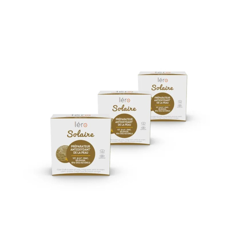 Le trio solaire des laboratoires Léro renforce la capacité naturelle de la peau à faire face aux rayons du soleil. Les Capsules vous apporte des micro-nutriments essentiels qui vous aideront à améliorer la qualité de votre peau et la maintiendront en bonne santé.