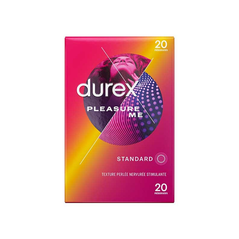 PLAISIR - les préservatifs Durex Pleasure me ont une texture perlée et nervurée stimulante pour procurer un maximum de plaisir à votre partenaire. Ils sont extra lubrifiés avec un lubrifiant à base de silicone.