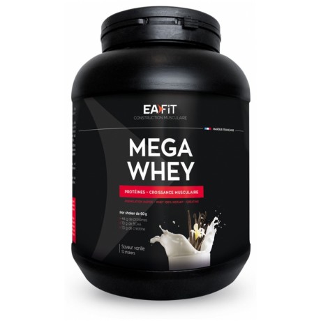 L’association de ces 2 procédés technologiques permet une croissance musculaire maximale après une phase de plateau. Megawhey bénéficie également de créatine dont les effets ont été démontrés sur l’explosivité. Pour améliorer la digestion, des probiotiques Lactobacillus acidophilus ont été ajoutés. Megawhey présente un aminogramme montrant une teneur en BCAA minimale de 21,56 g/100g de protéines et un indice chimique supérieur à 100, lui conférant des qualités nutritionnelles supérieures.