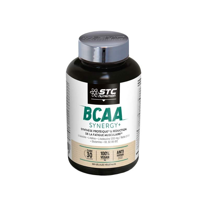Les gélules BCAA synergy+ de STC Nutrition sont des compléments alimentaires de nutrition sportive, favorisant la constitution musculaire et réduisant la fatigue.