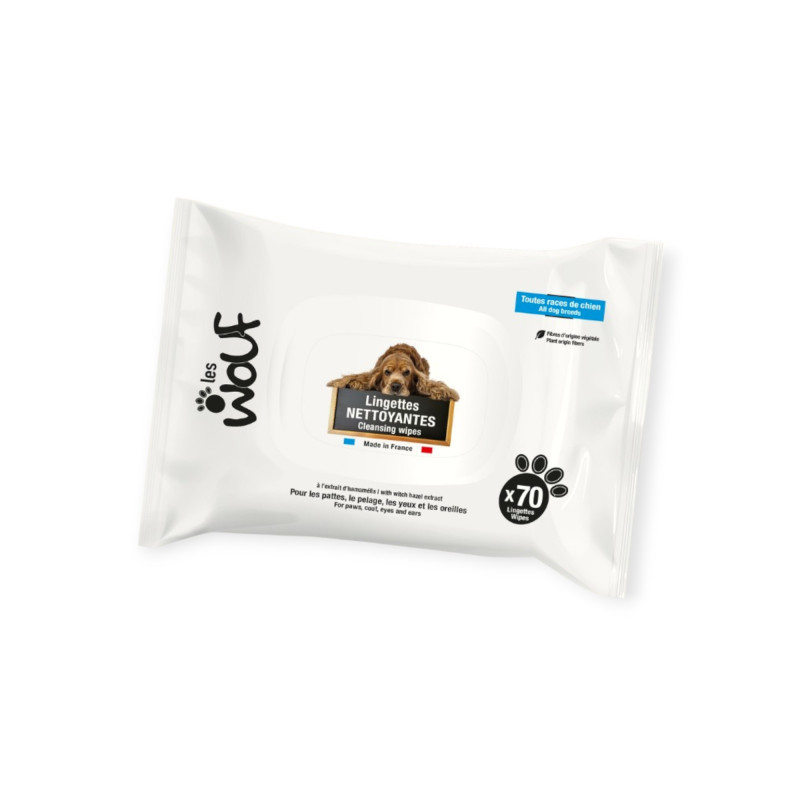 Pratiques et douces, ces lingettes nettoyantes éliminent saletés et odeurs en un geste. À emporter partout pour un chien toujours frais et propre !
