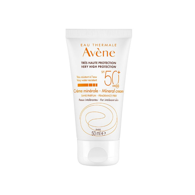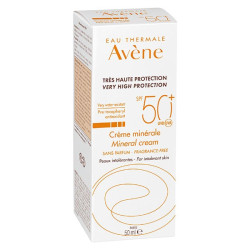 Avène Solaire Crème Minérale SPF50+ Visage 50ml est conçue pour les peaux intolérantes aux filtres chimiques et aux parfums et pour les peaux irritées des enfants et des adultes.