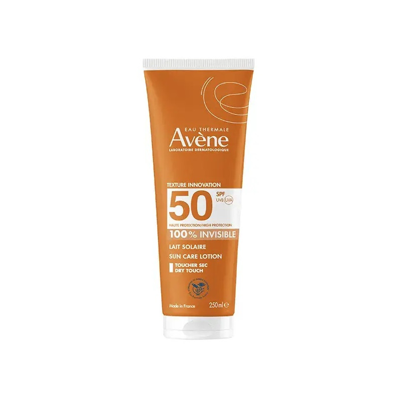 Avène Solaire Lait SPF 50+ 250 ml à la texture fluide et légère est une très haute protection solaire SPF 50+, particulièrement recommandée pour les peaux sensibles et hypersensibles au soleil et toutes les peaux exposées à un ensoleillement intense.