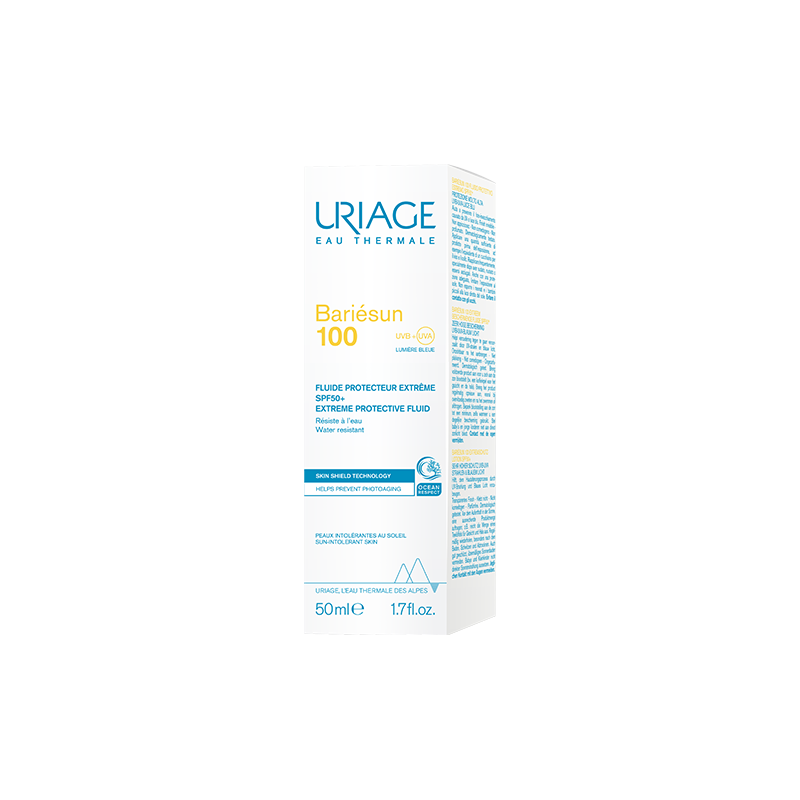 Uriage Bariésun 100 Fluide Protecteur Extrême est une haute protection contre les UVA et UVB. Le Fluide Protecteur Extrême limite la pénétration des filtres organiques et les dommages cellulaires dus aux UV et la lumière bleue. Sa formule est photostable et résistante à l'eau. Le Fluide Protecteur Extrême est formulé à partir de l'Eau Thermale d'Uriage qui est apaisante et hydratante.