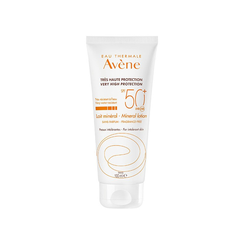 Avène Solaire Lait Minéral SPF50+ 100ml, formulé exclusivement avec des filtres solaires minéraux, protège efficacement votre peau contre les UVA et les UVB.