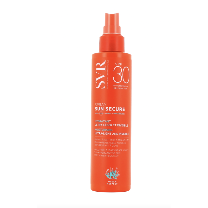 Le spray Sun Secure SPF 30 est une protection solaire de la marque SVR. Destiné au corps et au visage, il protège la peau du soleil tout en lui apportant de l'hydratation.