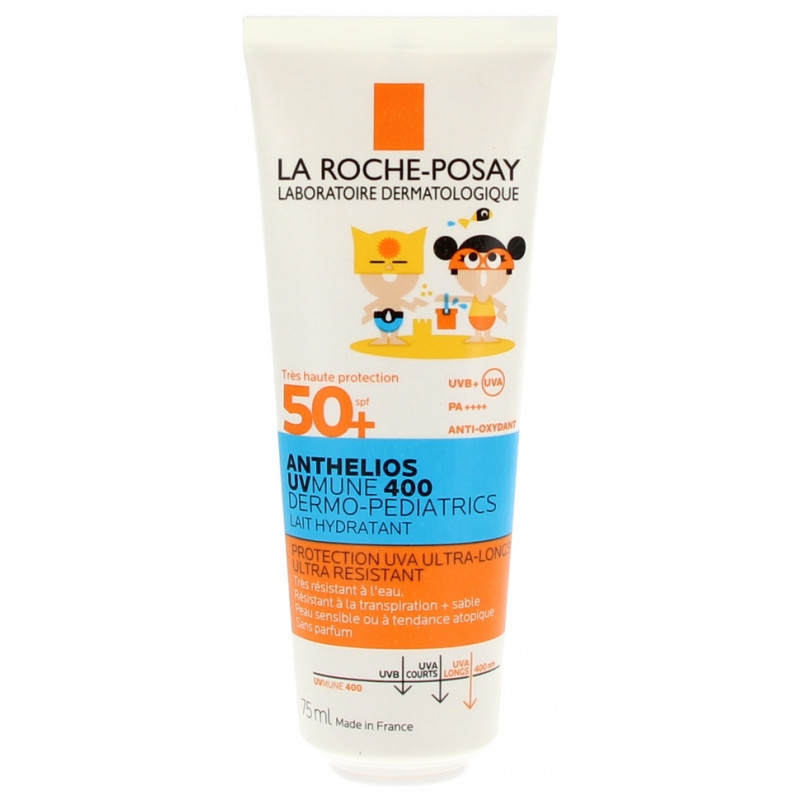 La Roche-Posay Anthelios UVMune Dermo-Pediatrics Lait SPF50+ 75 ml est une très haute protection solaire hydratante visage et corps, destinée aux peaux sensibles ou à tendance atopique des enfants.