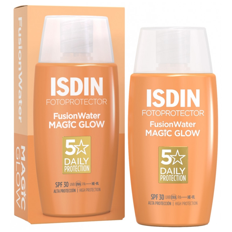 Isdin Fotoprotector Fusion Water Magic Glow Crème Solaire SPF30 50 ml est un écran solaire ultra-léger pour le visage, à la phase externe aqueuse, d'usage quotidien.