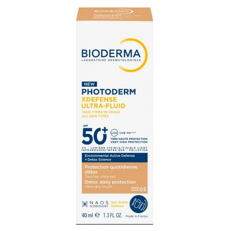 Bioderma Photoderm XDefense Ultra-Fluid SPF50+ Teinté 40 ml - Teinte : 03 agit comme un bouclier protecteur, préservant la peau des effets nocifs des rayons UV, de la lumière visible, des infrarouges et de la pollution.