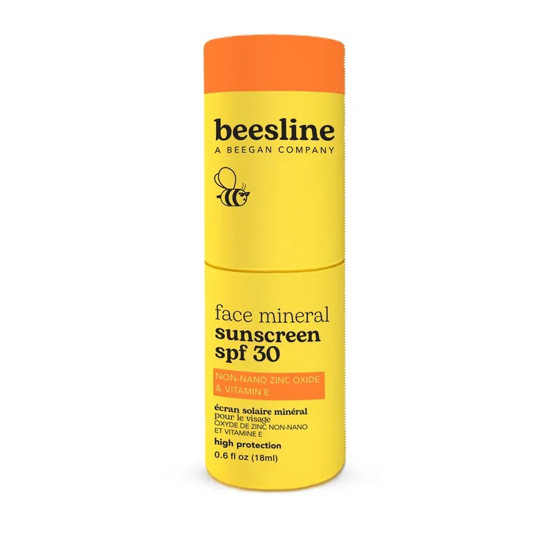Le Stick Solaire Minéral SPF30 Beesline protège tous les types de peaux des UV nocifs et s'emporte partoût grâce à son format stick pratique.