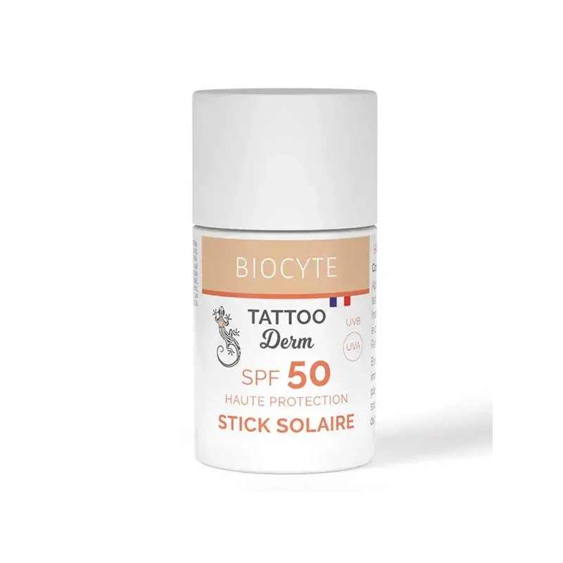 Biocyte - Tatoo Derm Stick Solaire SPF50 - Haute protection solaire - Format nomade pour peaux tatouées