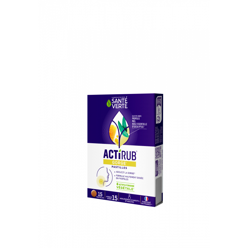 En hiver, notre organisme fait face à de nombreuses agressions et notre système immunitaire est plus régulièrement sollicité, notamment en cas d’irritation de la gorge. ACTIRUB® pastilles est un complexe d’actifs, avec notamment de l’huile essentielle d’Eucalyptus, qui a un effet apaisant sur la gorge et le pharynx.