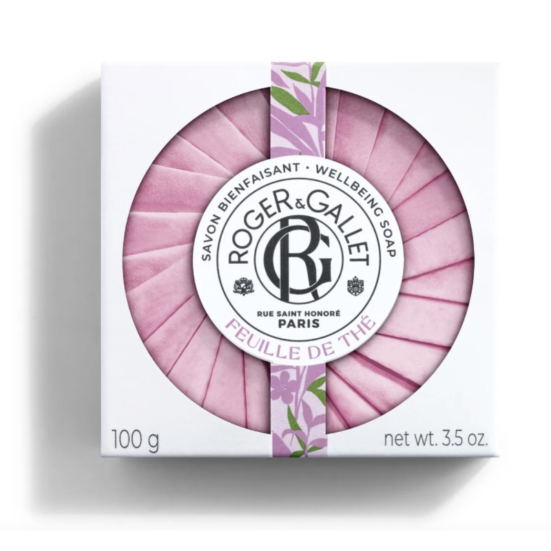 Le Savon Bienfaisant Feuille de Thé de Roger et Gallet est un savon formulé avec 96% d'ingrédients d'origine naturelle. Grâce à sa mousse légère et onctueuse ce soin nettoie la peau tout en douceur et la laisse délicatement parfumée. La peau est douce, soyeuse et veloutée.