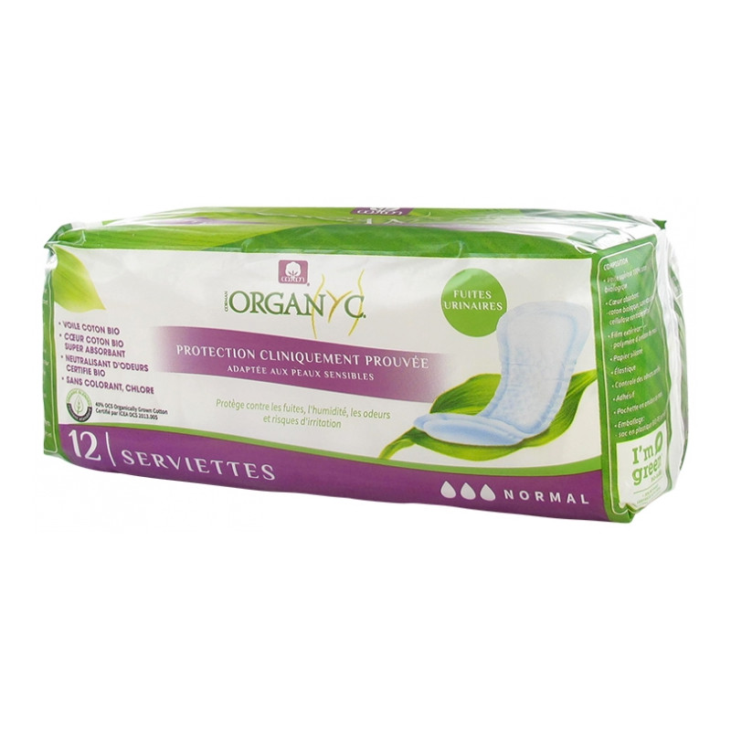 proteOrganyc Fuites Urinaires Normal 12 Serviettes Bio sont des protections contre les fuites, l'humidité, les odeurs et risques d'irritation, adaptées aux peaux sensibles. Le format Normal est conçu pour les fuites légères à moyennes.