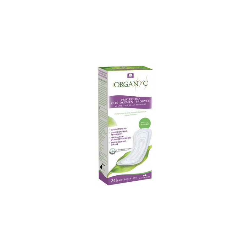 Organyc Fuites Urinaires Light 24 Protège-Slips Ultra-Fins Bio sont des protections contre les fuites, l'humidité, les odeurs et risques d'irritation, adaptées aux peaux sensibles. Le format Ultra-Fins est conçu pour les fuites très légères.