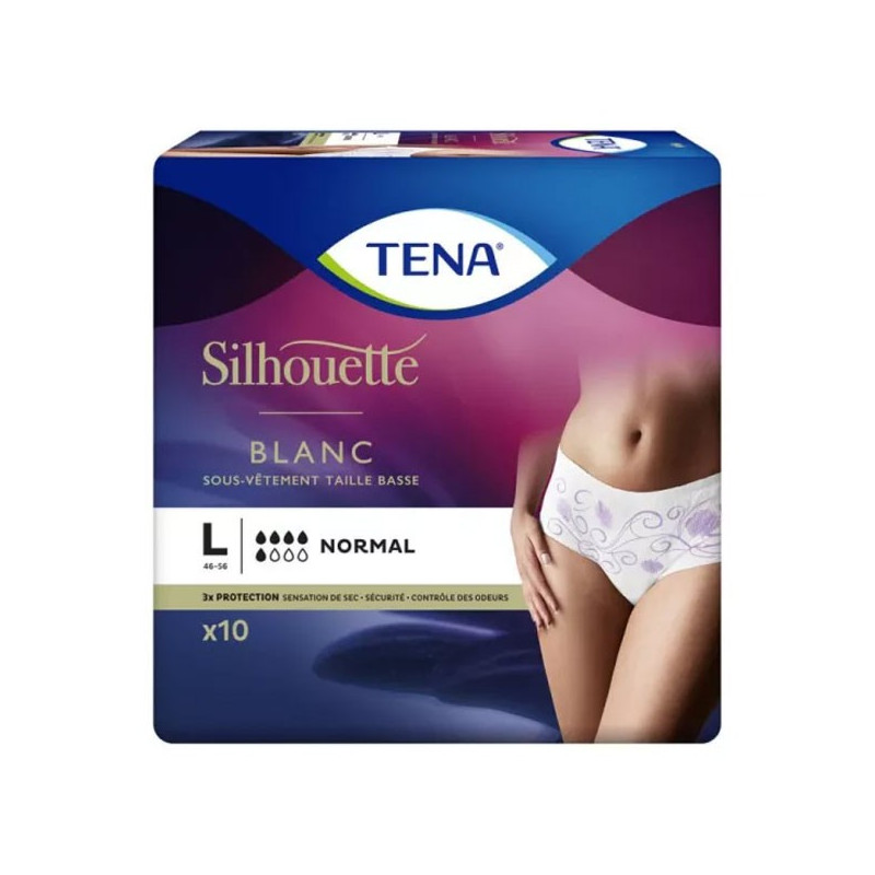 Conçu pour épouser parfaitement l’anatomie féminine comme un sous-vêtement classique, silhouette normal large de TENA, est rapide et garde au sec pour un plus grand confort cutané.