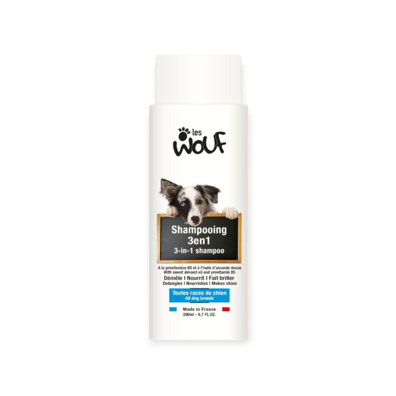 Le Shampooing 3 en 1 de Les Wouf est spécialement formulé pour offrir à votre chien un soin complet lors du bain.