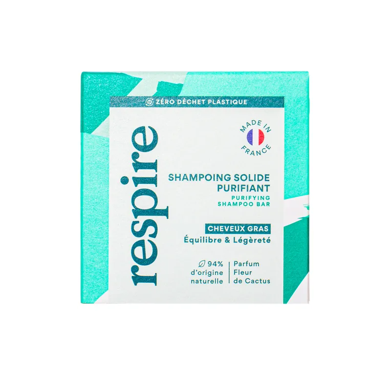 Notre solide purifiant laisse les cheveux brillants, légers et sans effet rêche. Sa formule purifiante permet d’espacer les lavages : parfait pour respirer entre deux shampoings. Vous pourrez abuser de la générosité de sa mousse.